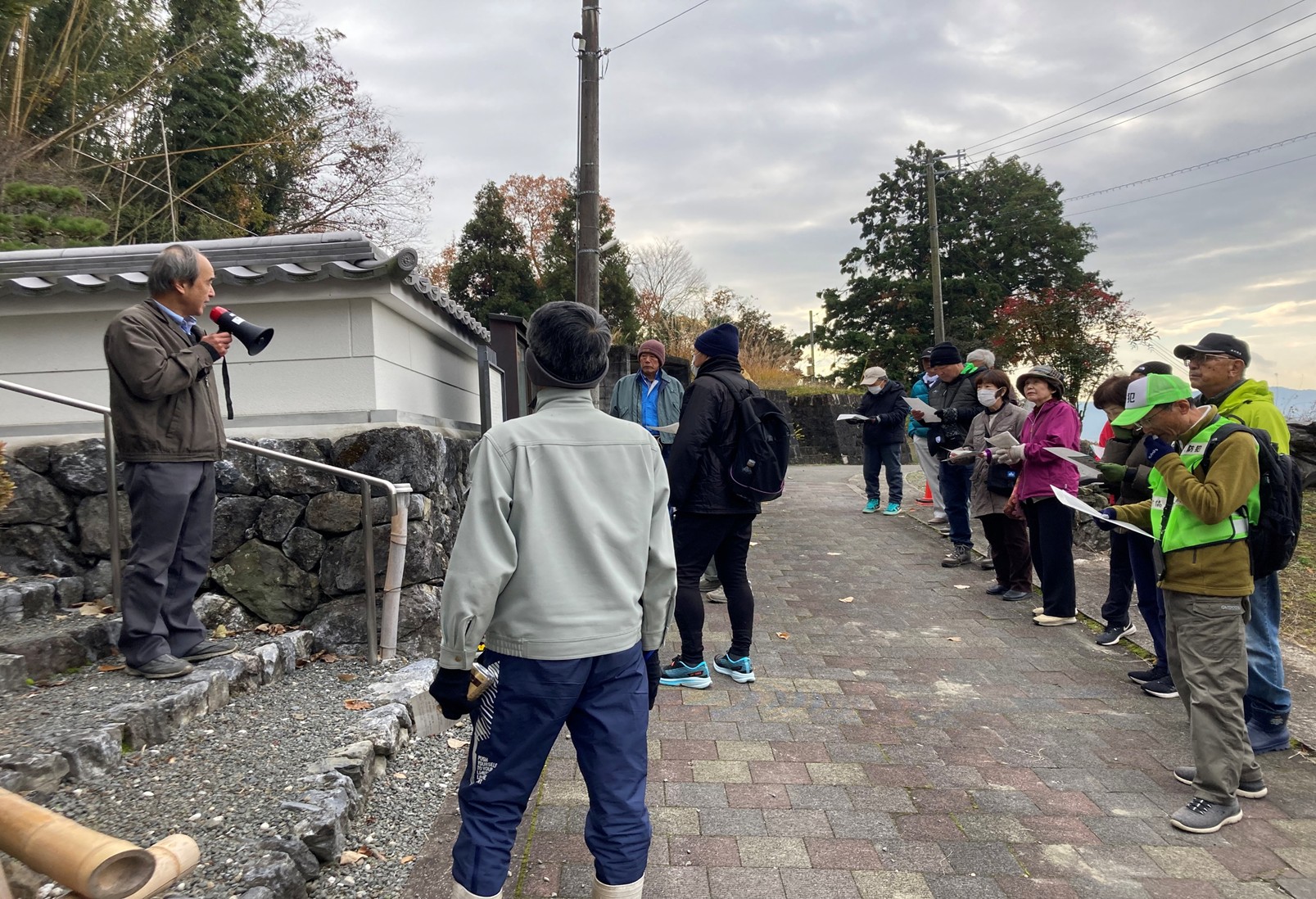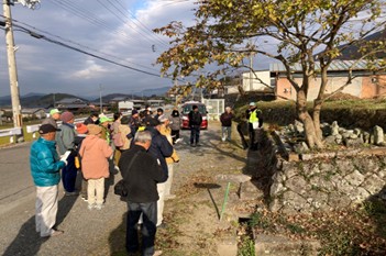 「ふるさとウォーク」が12月7日に行われました。ふるさと千歳の再発見をするのと健康増進を図る目的で昨年度から始まって今回が2回目目となります。霜が降りる寒い朝となりましたが、秋晴れの好天に恵まれ30名の参加者がありました。今回は、北谷区、中区、江島里区を巡る約3.5㎞のコースで、北谷区のお地蔵さん、中区の山の神、江島里区の塞の神など新しい発見がありました。最後には、有形文化財に登録されている江島里区の廣瀬正春邸(一般公開はされていません)を見せていただきました。ゆっくりしたペースでおしゃべりをしながら歩いて交流を深めることも出来ました。次回は、国分区と毘沙門区を訪ねます。多くの参加をお待ちしています。