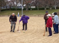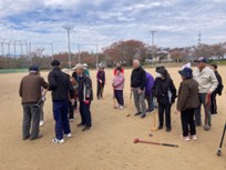 11月12日(水)、秋晴れのもと「グラウンドゴルフを楽しむ会」が開催されました。今回は、27名の参加があり、みなさんゲームを楽しんでおられました。2ゲームのスコアの合計により勝敗を決めますが、前半はよかったけど、後半は崩れてしまうなど、なかなか難しいものです。今回もグラウンドゴルフ初体験の方もおられました。みなさんもグラウンドゴルフに気軽に参加してください。次回は1月です。参加をお待ちしています。