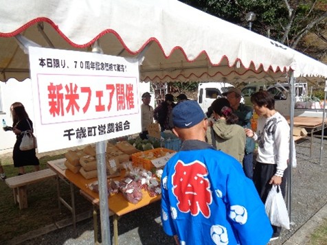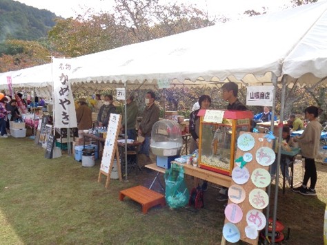 町内から多くの出店希望があり、飲食や雑貨販売など賑やかなマルシェとなった。町内に移住してこられた方の出店も見られ、町民を挙げての取組となっています。また、農業が盛んな町内でもあることから、地元産の農作物の即売も行われ、今年は新米フェアも開催され安価で米の販売も行われました。