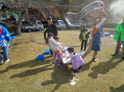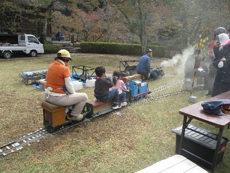 サンガFCから借用したキックスピード測定や昨年好評であったミニ鉄道の運行、輪投げに加え、シャボン玉遊び、めだかすくいなど、新たなプログラムも今年は増え、多くの子ども達が楽しむことができました。ミニ鉄道には多くの子ども達の乗車があり好評でした。