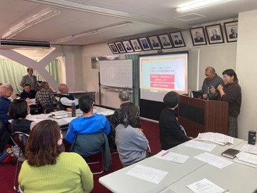 令和8年1月24日に千歳町安全・安心のまちづくり推進会議のまちづくり部会主催の移住者交流会が開催されました。この取組は、人口減少にともない、増加していく空き家をどのように活用し移住者などをどのようにまちに受け入れていくかを考えようと令和5年度に始まり、今回が3回目となります。今回は、東京から南丹市に移住してこられ、地域に住む人と移住希望者をつなぐ取組として農業体験など様々な活動をされているドワイヤーはづきさんに活動の内容や体験談をお聴きした後、空き家の活用方法などについて全国空き家アドバイザー協議会の畑哲也さん畑正枝さんにクイズ方式で楽しくご講演をいただきました。当日は、まちづくり部員、自治会役員、区長、新たに千歳町に移住してこられた方など23名の参加者があり、これからの千歳町における移住者の受け入れについて考える機会となりました。